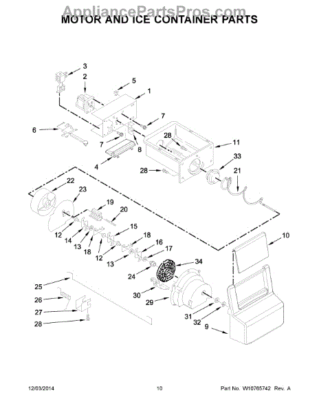 The Whirlpool ice dispenser motor is an OEM replacement part responsible for driving the mechanism that dispenses ice from the ice maker in a refrigerator. This motor is typically located within the ice container assembly, where it powers the auger or paddle responsible for pushing ice cubes through the dispenser chute and into a container or glass. When a user activates the ice dispenser on the refrigerator's exterior, the motor engages, causing the auger or paddle to rotate, delivering ice efficiently. This Whirlpool part can also be used on Maytag, KitchenAid, Jenn-Air, Amana, Magic Chef, Admiral, Norge, Roper, and Kenmore/Sears brand appliances. This part fixes the following symptoms