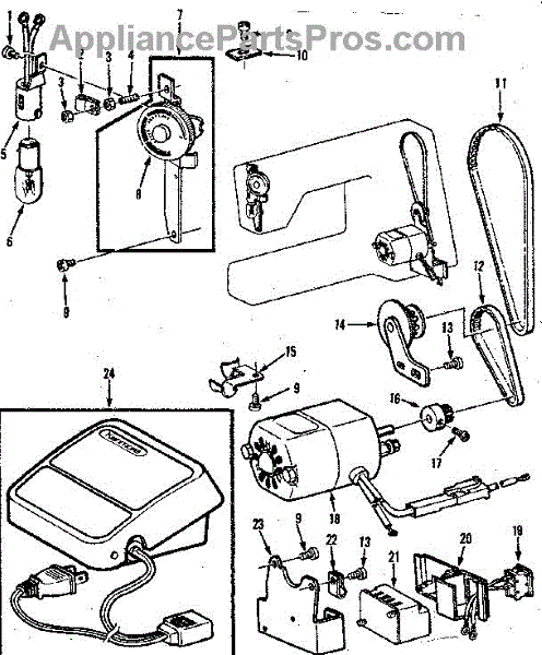 Parts for Kenmore 158.1784184 (1581784184, 158 1784184): Motor Assembly And Foot Control Parts