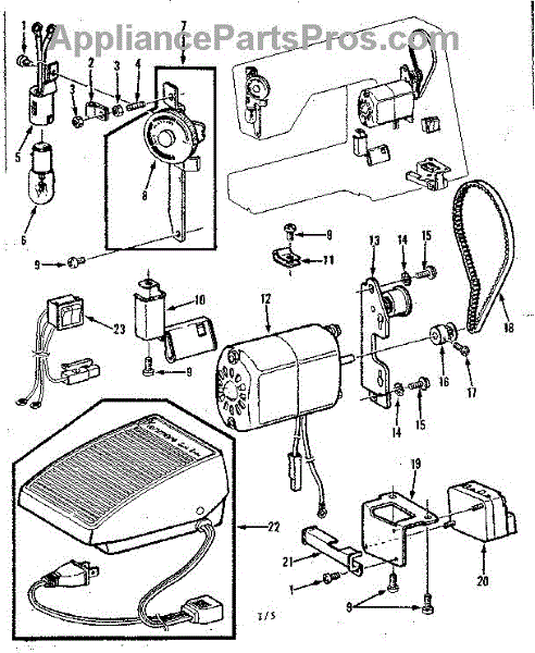 Parts for Kenmore 158.1789180 (1581789180, 158 1789180): Motor Assembly And Foot Control Parts