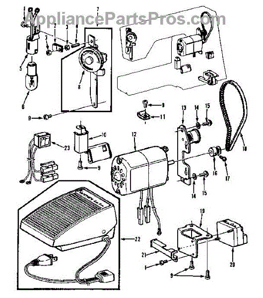 Parts for Kenmore 158.1789181 (1581789181, 158 1789181): Motor Assembly And Foot Control Parts