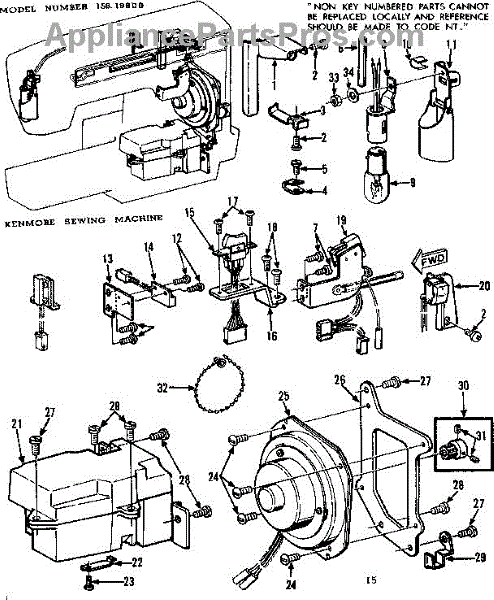 Parts for Kenmore 158.19800 (15819800, 158 19800): Motor Assembly Parts