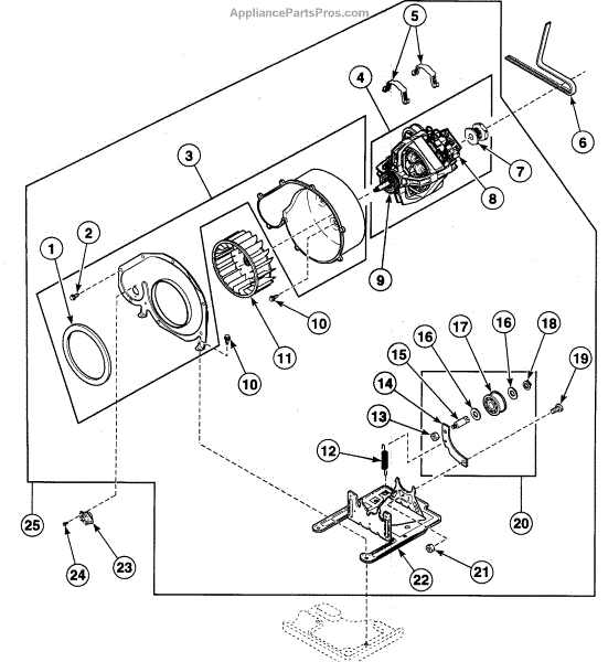 Considered a crucial part of the dryer, the blower fan assembly is the part that pulls in air from outside and then circulates that air in the drum to ensure clothing gets dry. After the air is moved around the drum, it is then moved through the exhaust vent. This part is located on the motor shaft and is made of durable plastic. Regular use can lead to wear and tear or damage to this component. If this occurs, the air in the dryer may not dry the clothing. In this case, the blower fan assembly will need to be replaced.If the blower fan assembly needs to be replaced, first the dryer should be unplugged from power. Take the cabinet top off and remove the front panel on the appliance. Take out the drum, remove the motor clamp, and loosen the blower fan so it can be removed. Take it out and replace it with the new blower fan assembly.The blower fan assembly is designed to be used with dryers manufactured by Amana and Speed Queen. It is sold as an individual part. This is an authentic OEM replacement part that is sourced directly from the manufacturer.