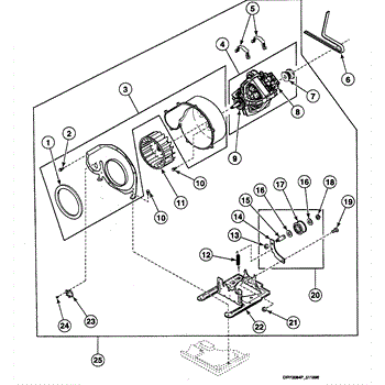 • Seat the housing squarely; the blower wheel spins freely and clear lint buildup before reassembly