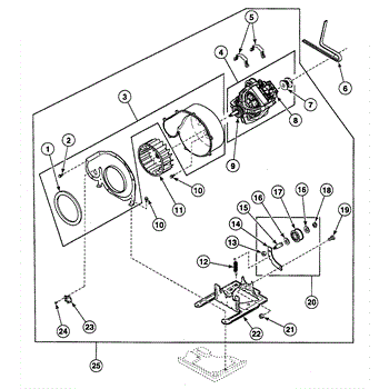 Considered a crucial part of the dryer, the blower fan assembly is the part that pulls in air from outside and then circulates that air in the drum to ensure clothing gets dry. After the air is moved around the drum, it is then moved through the exhaust vent. This part is located on the motor shaft and is made of durable plastic. Regular use can lead to wear and tear or damage to this component. If this occurs, the air in the dryer may not dry the clothing. In this case, the blower fan assembly will need to be replaced.If the blower fan assembly needs to be replaced, first the dryer should be unplugged from power. Take the cabinet top off and remove the front panel on the appliance. Take out the drum, remove the motor clamp, and loosen the blower fan so it can be removed. Take it out and replace it with the new blower fan assembly.The blower fan assembly is designed to be used with dryers manufactured by Amana and Speed Queen. It is sold as an individual part. This is an authentic OEM replacement part that is sourced directly from the manufacturer.