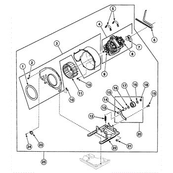 • Positions and tensions the drive belt or pulley to transfer motor power to the drum