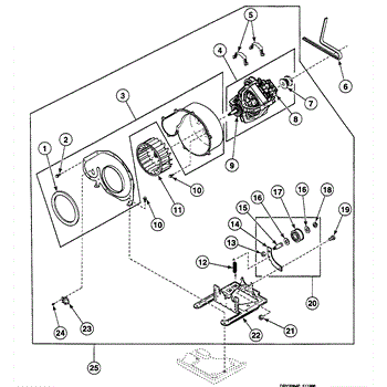 Considered a crucial part of the dryer, the blower fan assembly is the part that pulls in air from outside and then circulates that air in the drum to ensure clothing gets dry. After the air is moved around the drum, it is then moved through the exhaust vent. This part is located on the motor shaft and is made of durable plastic. Regular use can lead to wear and tear or damage to this component. If this occurs, the air in the dryer may not dry the clothing. In this case, the blower fan assembly will need to be replaced.If the blower fan assembly needs to be replaced, first the dryer should be unplugged from power. Take the cabinet top off and remove the front panel on the appliance. Take out the drum, remove the motor clamp, and loosen the blower fan so it can be removed. Take it out and replace it with the new blower fan assembly.The blower fan assembly is designed to be used with dryers manufactured by Amana and Speed Queen. It is sold as an individual part. This is an authentic OEM replacement part that is sourced directly from the manufacturer.