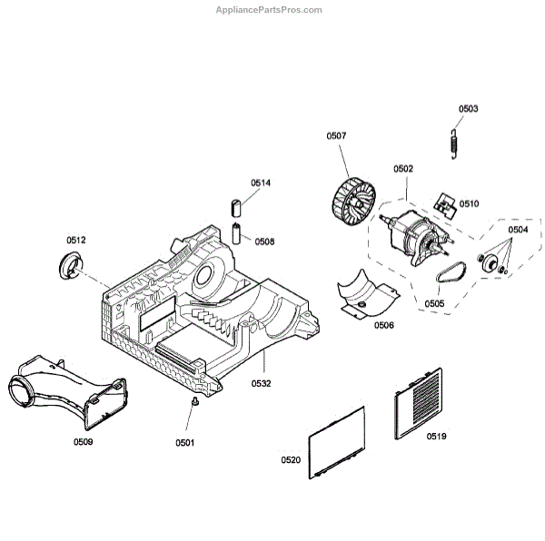 This part is a dryer motor assembly. It is located on the back of the appliance. The part is responsible for turning the dryer blower and drum. Make sure the dryer is free of lint and regularly clean the dryer vents to keep the motor assembly in good shape. If the motor assembly is damaged or malfunctioning, it may cause the dryer to hum. The dryer may also have difficulty spinning.If the motor assembly has gone bad, it should be replaced. Unplug the dryer and consider work gloves to protect the hands. Remove the lint screen and housing, the lid, and the wire harness plug. Take off the front panel and unhook it from the hinges. Remove the pulley and belt to reach the drive motor. Take out the clamps and pull the motor assembly out. Place the new one in the same location and reassemble the dryer.Designed for dryers manufactured by Bosch, this motor assembly is sold individually. It is a genuine OEM replacement part that has been directly obtained from the manufacturer.