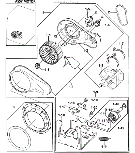 Parts for Samsung DV350AER/XAA-00: Motor Assy Parts