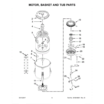 The Motor Rotor is an OEM replacement part for Whirlpool washing machines. Situated within the transmission housing, this specialized metal component physically connects the drive motor to the outer brake housing that controls the drive shaft and wash basket movements during all cycles.