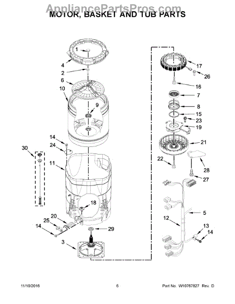 The ring-tub is subjected to rotational forces and vibrations during each cycle. Causes of a bad ring-tub include cracks, chips, or other damage due to stress and wear over time. Loose fasteners, broken mounting tabs, or a misshapen structure are also signs it needs replacement.