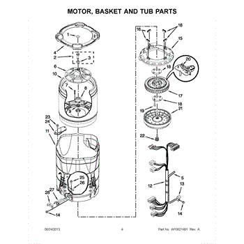 Outer tub assembly includes: outer tub, tub seal, drive shaft and bearings. To rebuild the tub, order the bearing and tub seal kit W10435302 and the bearing installation tool W10447783.