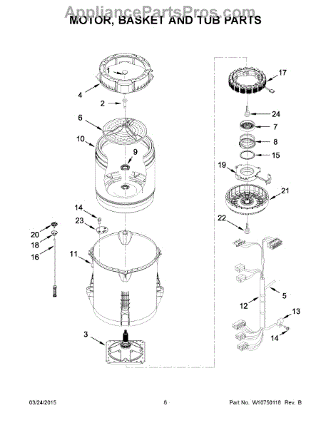 The ring-tub is subjected to rotational forces and vibrations during each cycle. Causes of a bad ring-tub include cracks, chips, or other damage due to stress and wear over time. Loose fasteners, broken mounting tabs, or a misshapen structure are also signs it needs replacement.