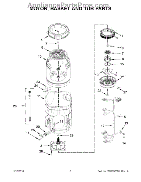 The ring-tub is subjected to rotational forces and vibrations during each cycle. Causes of a bad ring-tub include cracks, chips, or other damage due to stress and wear over time. Loose fasteners, broken mounting tabs, or a misshapen structure are also signs it needs replacement.
