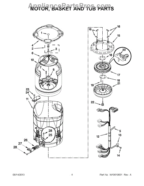 Outer tub assembly includes: outer tub, tub seal, drive shaft and bearings. To rebuild the tub, order the bearing and tub seal kit W10435302 and the bearing installation tool W10447783.