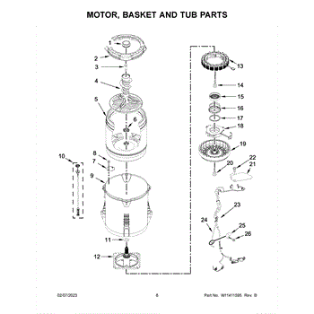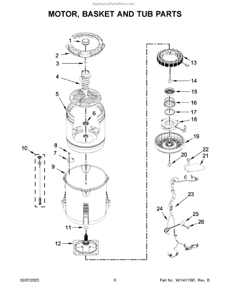 The ring-tub is subjected to rotational forces and vibrations during each cycle. Causes of a bad ring-tub include cracks, chips, or other damage due to stress and wear over time. Loose fasteners, broken mounting tabs, or a misshapen structure are also signs it needs replacement.