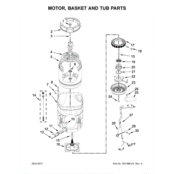 The tub ring prevents leakage, provides noise dampening, and distributes rotational forces evenly across the tub base during spin cycles. Its durable construction withstands continuous agitation and movement.