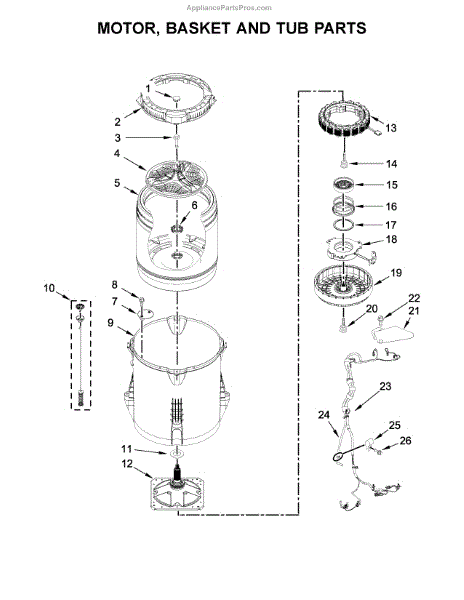 Parts for Maytag MVWB835DW2: Motor, Basket And Tub Parts