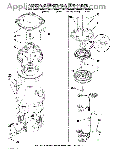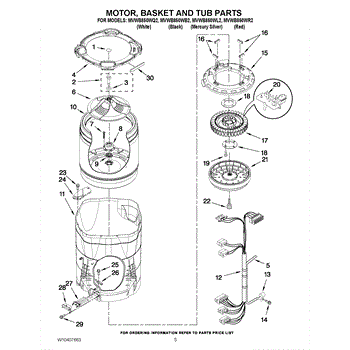 Outer tub assembly includes: outer tub, tub seal, drive shaft and bearings. To rebuild the tub, order the bearing and tub seal kit W10435302 and the bearing installation tool W10447783.