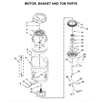 The ring-tub is subjected to rotational forces and vibrations during each cycle. Causes of a bad ring-tub include cracks, chips, or other damage due to stress and wear over time. Loose fasteners, broken mounting tabs, or a misshapen structure are also signs it needs replacement.