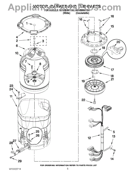 Outer tub assembly includes: outer tub, tub seal, drive shaft and bearings. To rebuild the tub, order the bearing and tub seal kit W10435302 and the bearing installation tool W10447783.