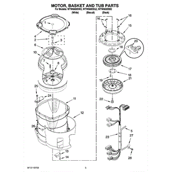 Parts for Whirlpool WTW6600SB2: 03 - Motor, Basket And Tub Parts