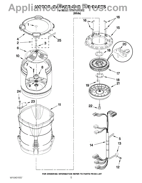 Washer outer tub assembly houses the inner basket and includes bearings and tub seal. Replace when cracked, damaged, or bearings are worn out.