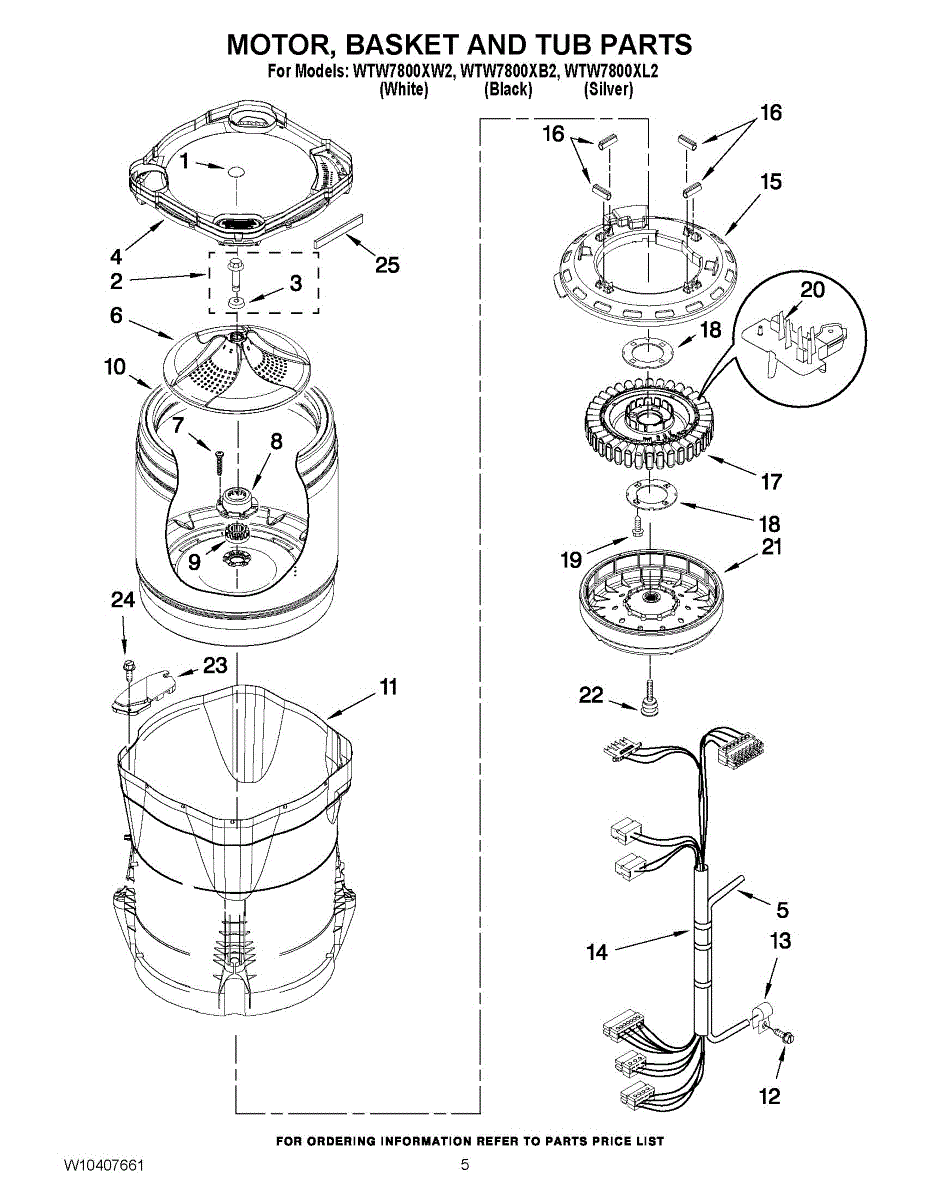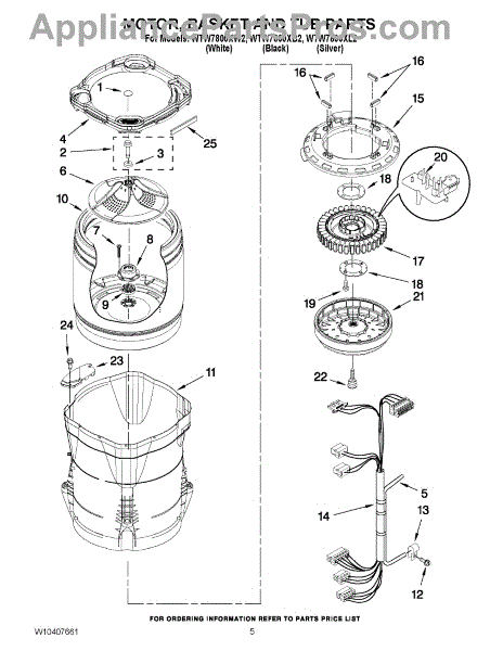 Washer outer tub assembly houses the inner basket and includes bearings and tub seal. Replace when cracked, damaged, or bearings are worn out.