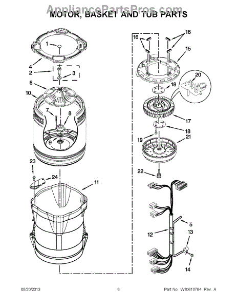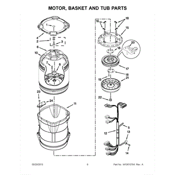 Complete inner basket assembly for top-load washers. Includes balance ring. Replace if basket is cracked, warped, or damaged from heavy loads.