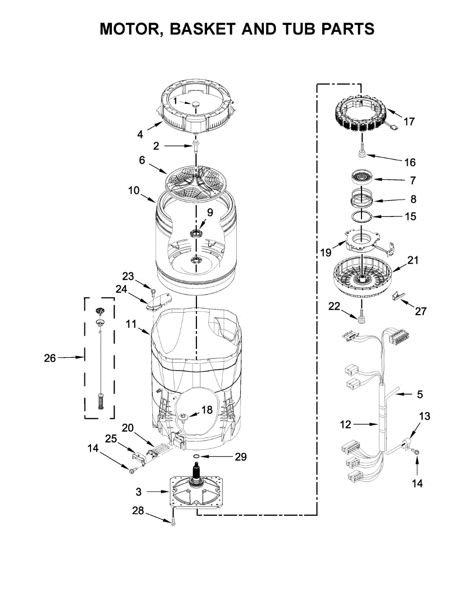 The ring-tub is subjected to rotational forces and vibrations during each cycle. Causes of a bad ring-tub include cracks, chips, or other damage due to stress and wear over time. Loose fasteners, broken mounting tabs, or a misshapen structure are also signs it needs replacement.