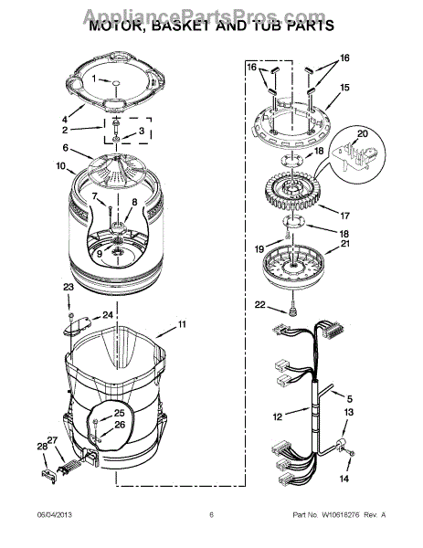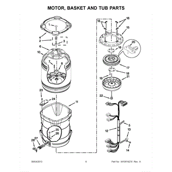 Outer tub assembly includes: outer tub, tub seal, drive shaft and bearings. To rebuild the tub, order the bearing and tub seal kit W10435302 and the bearing installation tool W10447783.