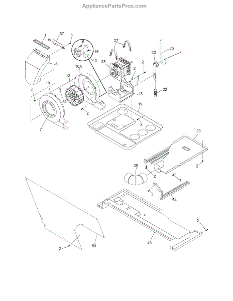 The blower housing seal is a perimeter gasket that closes the gap between the blower housing and the adjoining duct or bulkhead. It keeps airflow contained for efficient operation and helps prevent air leaks and debris from escaping.