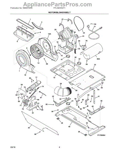 Parts for Electrolux FFLG4033QT1: 03 - Motor / Blower / Belt Parts