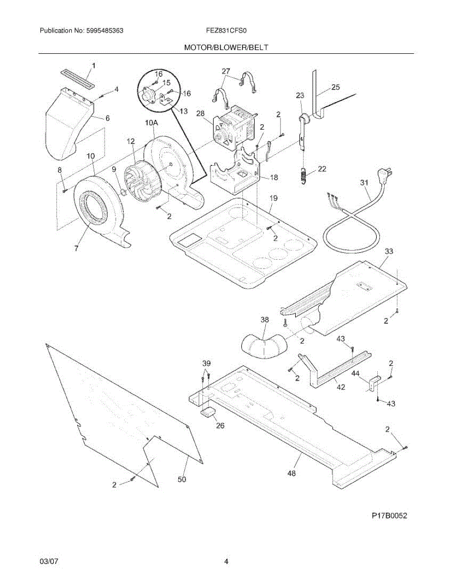 The blower housing seal is a perimeter gasket that closes the gap between the blower housing and the adjoining duct or bulkhead. It keeps airflow contained for efficient operation and helps prevent air leaks and debris from escaping.