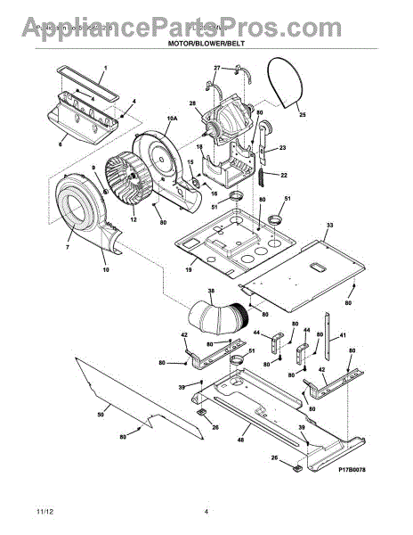 The Blower Wheel is an OEM part for Frigidaire clothes dryers. This component works to propel hot air through clothes during drying cycles. Causes of a bad blower wheel involve wear from years of operation, such as bearing deterioration or plastic fan blade cracking/warping. Foreign object damage or improper cleaning techniques pose other risk factors. Symptoms of a bad blower wheel include: