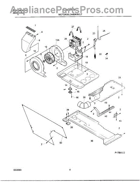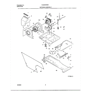 The blower housing assembly encloses the blower wheel and channels air through the unit's coils. Replacing a cracked or warped housing helps restore smooth airflow and reduce blower noise caused by rubbing or misalignment.