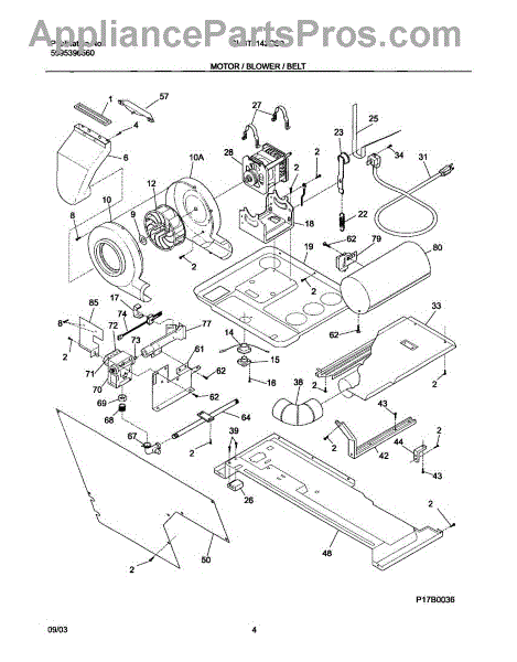 The Blower Wheel is an OEM part for Frigidaire clothes dryers. This component works to propel hot air through clothes during drying cycles. Causes of a bad blower wheel involve wear from years of operation, such as bearing deterioration or plastic fan blade cracking/warping. Foreign object damage or improper cleaning techniques pose other risk factors. Symptoms of a bad blower wheel include: