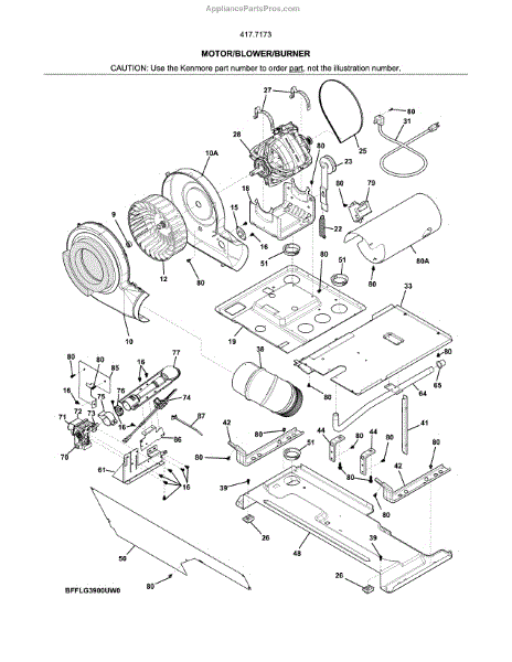 Parts for Kenmore 417.71732810 (41771732810, 417 71732810): Motor / Blower / Burner Parts