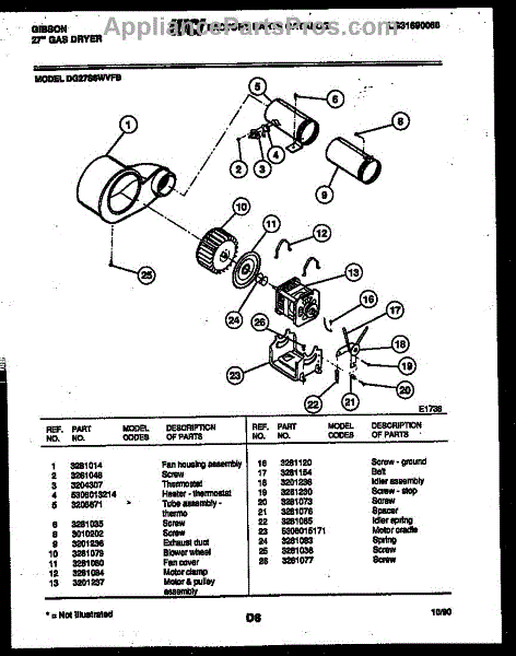 Parts for Frigidaire DG27S6WVFB: 06 - Motor And Blower Parts