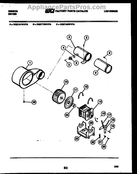 Parts for Frigidaire DG27T3WVFA: 05 - Motor And Blower Parts