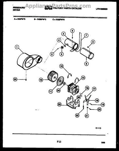 Parts for Frigidaire DGISFL0: 05 - Motor And Blower Parts