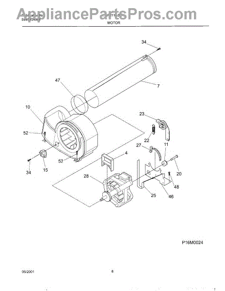 The Motor is an OEM part for Frigidaire dryers. It is responsible for driving the drum rotation in the dryer, allowing for the tumbling and drying of clothes. It converts electrical energy into mechanical motion, providing the necessary power to spin the drum and circulate air for efficient drying.