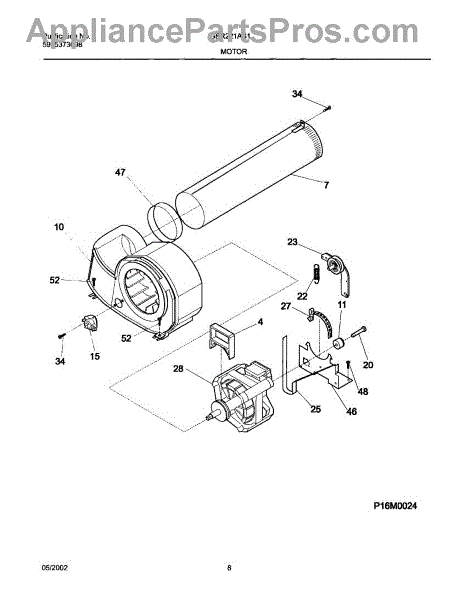 The Motor is an OEM part for Frigidaire dryers. It is responsible for driving the drum rotation in the dryer, allowing for the tumbling and drying of clothes. It converts electrical energy into mechanical motion, providing the necessary power to spin the drum and circulate air for efficient drying.