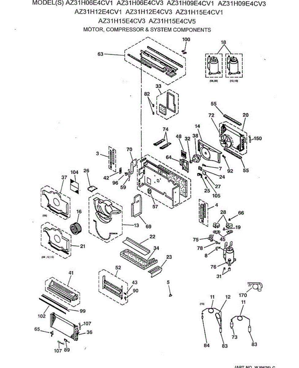 Parts for Ge AZ31H09E4CV3: 02 - Motor, Compressor & System Components Parts