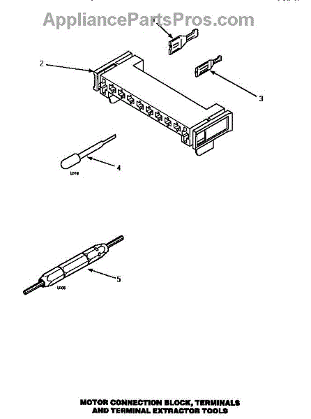 Motor Connection Block, Terminals & Terminal Extractor Tool (Le4427l / P1178401wl) (Le4427w / P1178401ww) (Le8327w / Ple8327w) (Le8457w / Ple8457w)