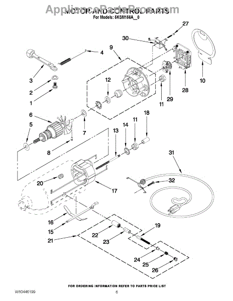 Parts for Kitchenaid 5KSM156ASR0: 03 - Motor And Control Parts