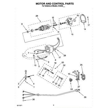 Motor brush holder includes illustration numbers: 28, 32, 33, 34, & 46.