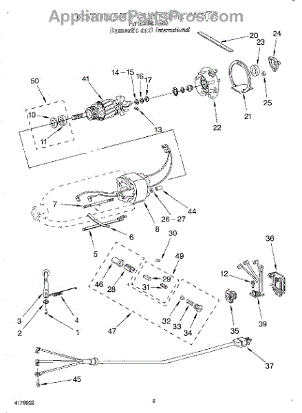 Motor brush holder includes illustration numbers: 28, 32, 33, 34, & 46.