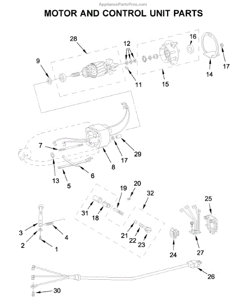 Parts for Kitchenaid 5K45SSPWH0: Motor And Control Unit Parts