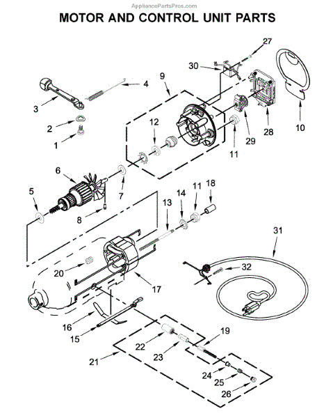 Parts for Kitchenaid 5KSM95PSEGD4: Motor And Control Unit Parts