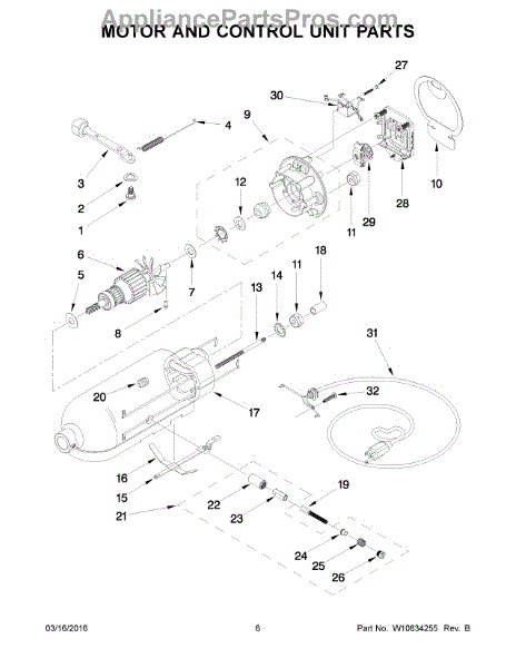 Motor brush holder includes illustration numbers: 28, 32, 33, 34, & 46.